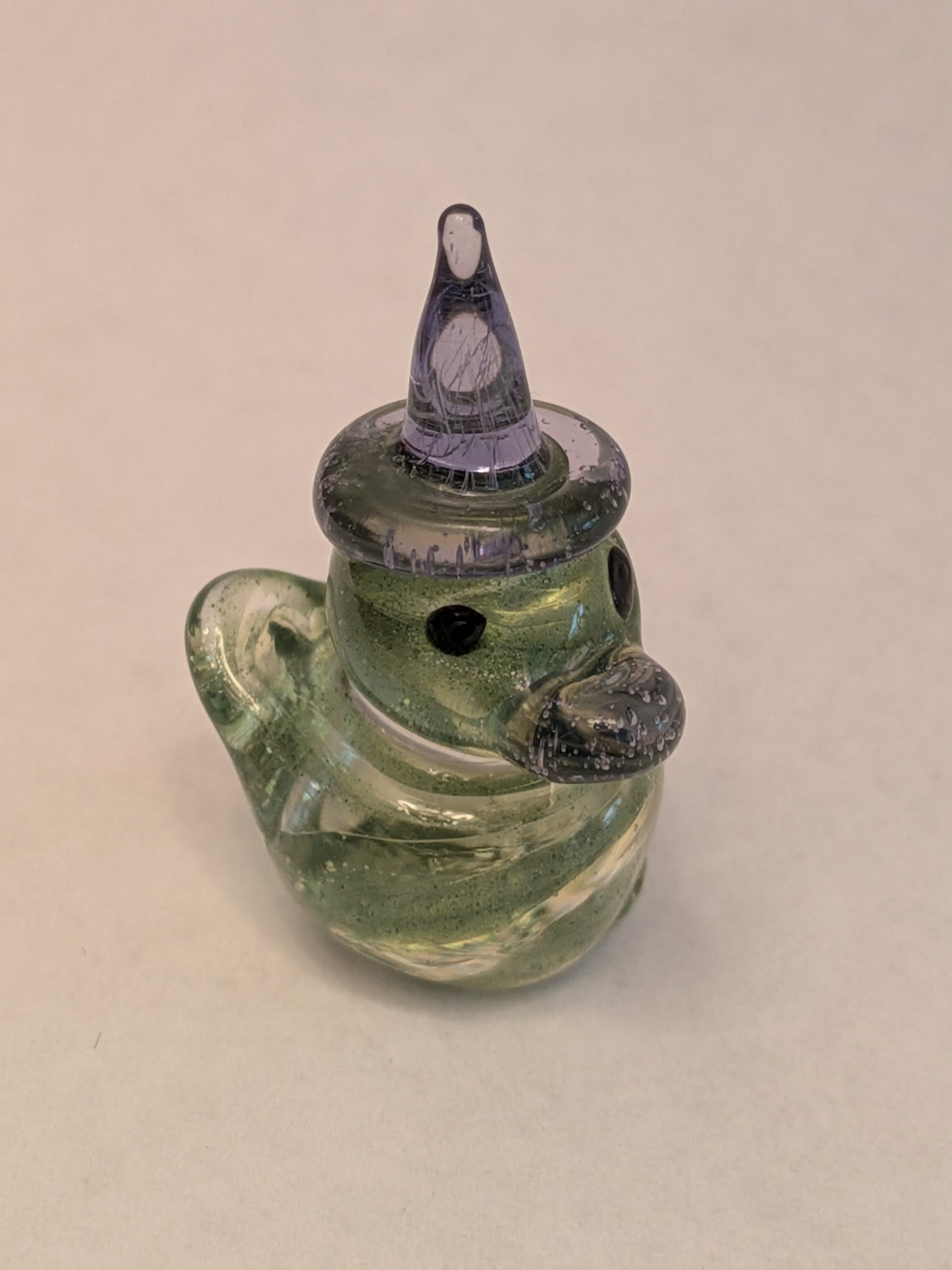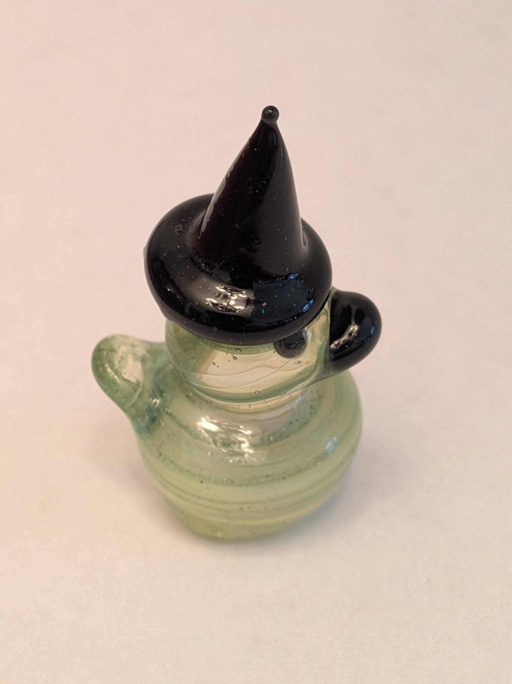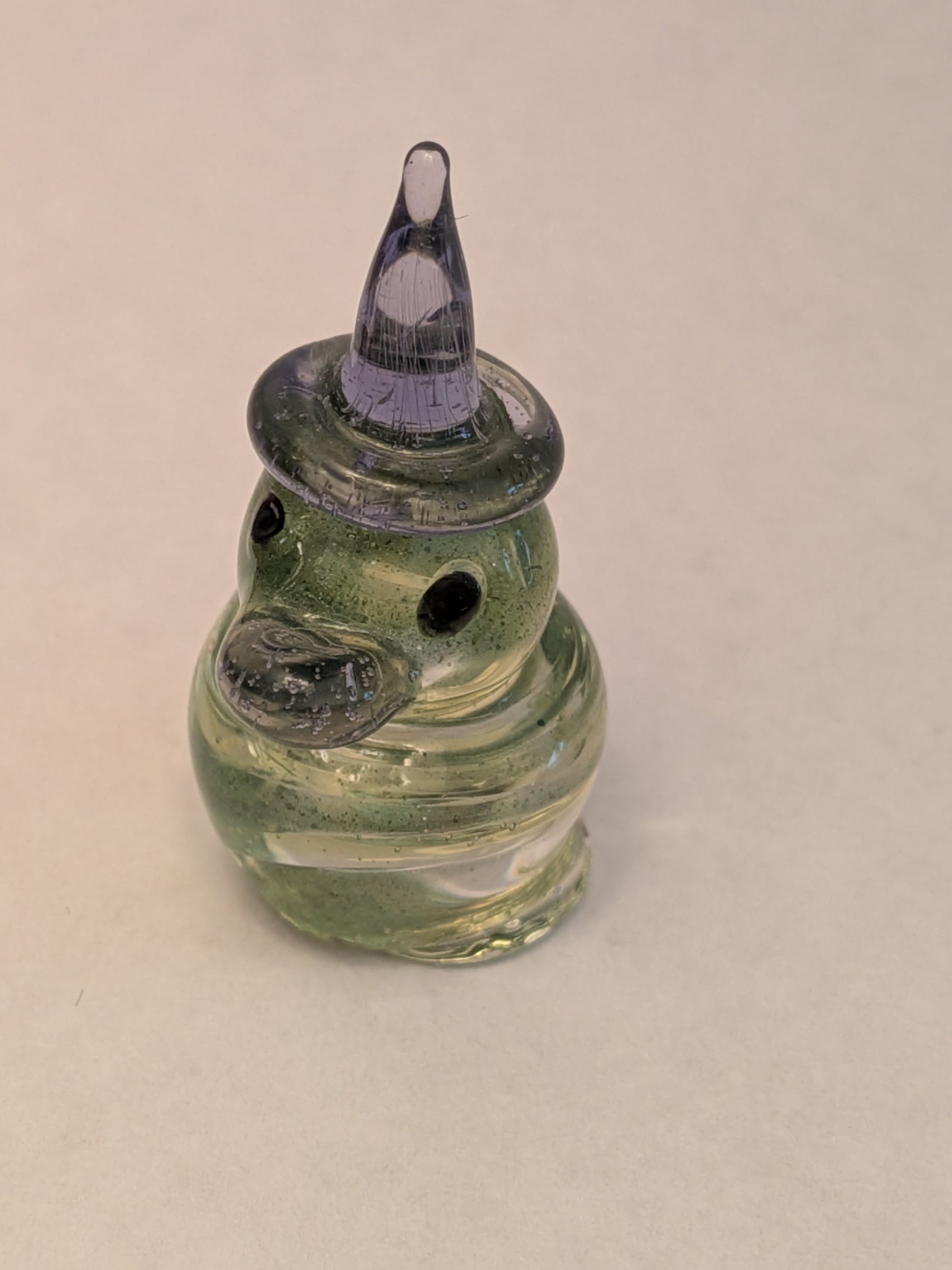 It's a duck! It's a witch! It's a bewitched duck, how wicked 😈 These miniature glass ducks come in two varieties, black hats and purple hats